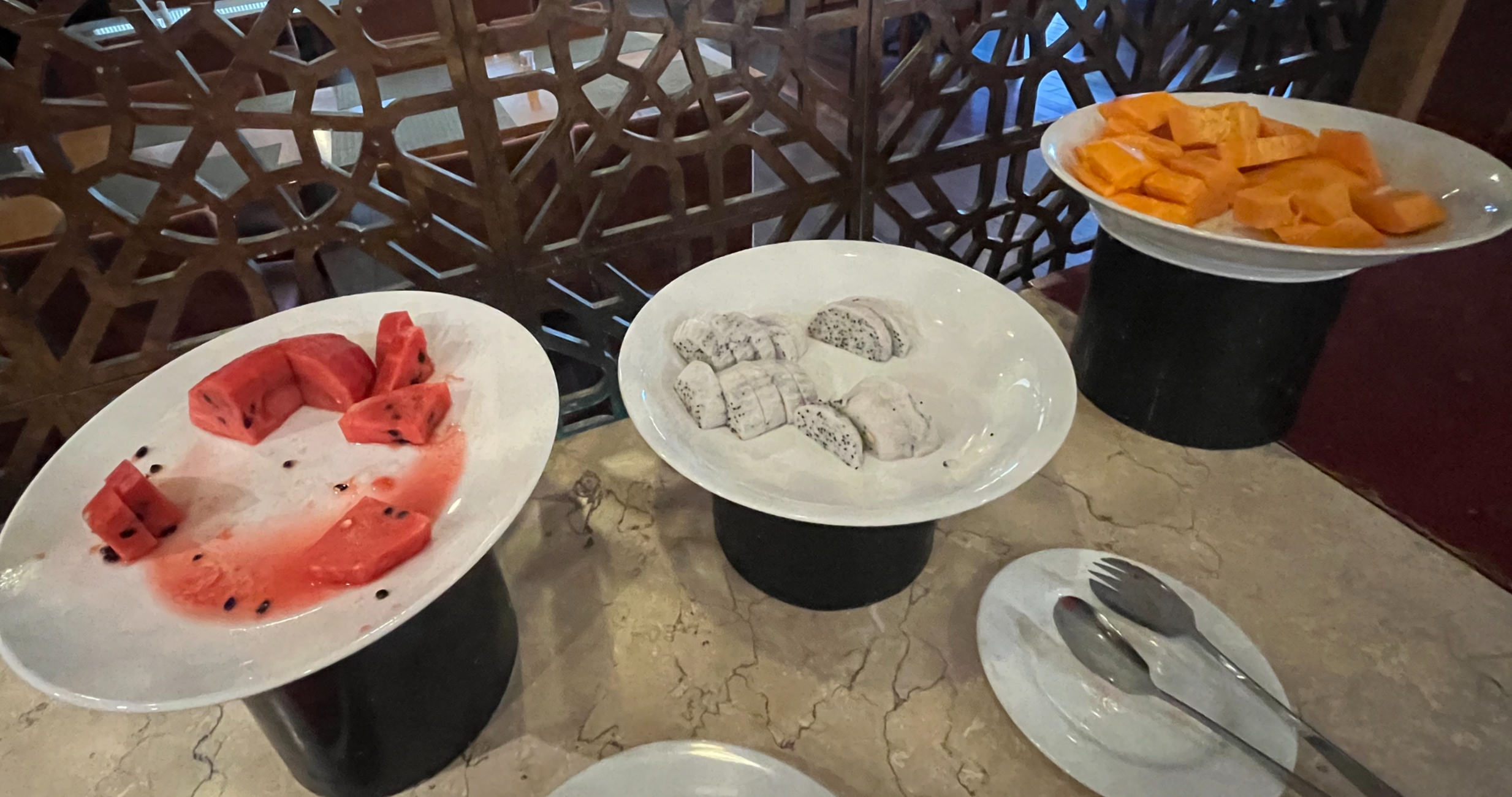 과일들도 반 이상이 없어서 접시에 담아 가기에 망설여졌다.