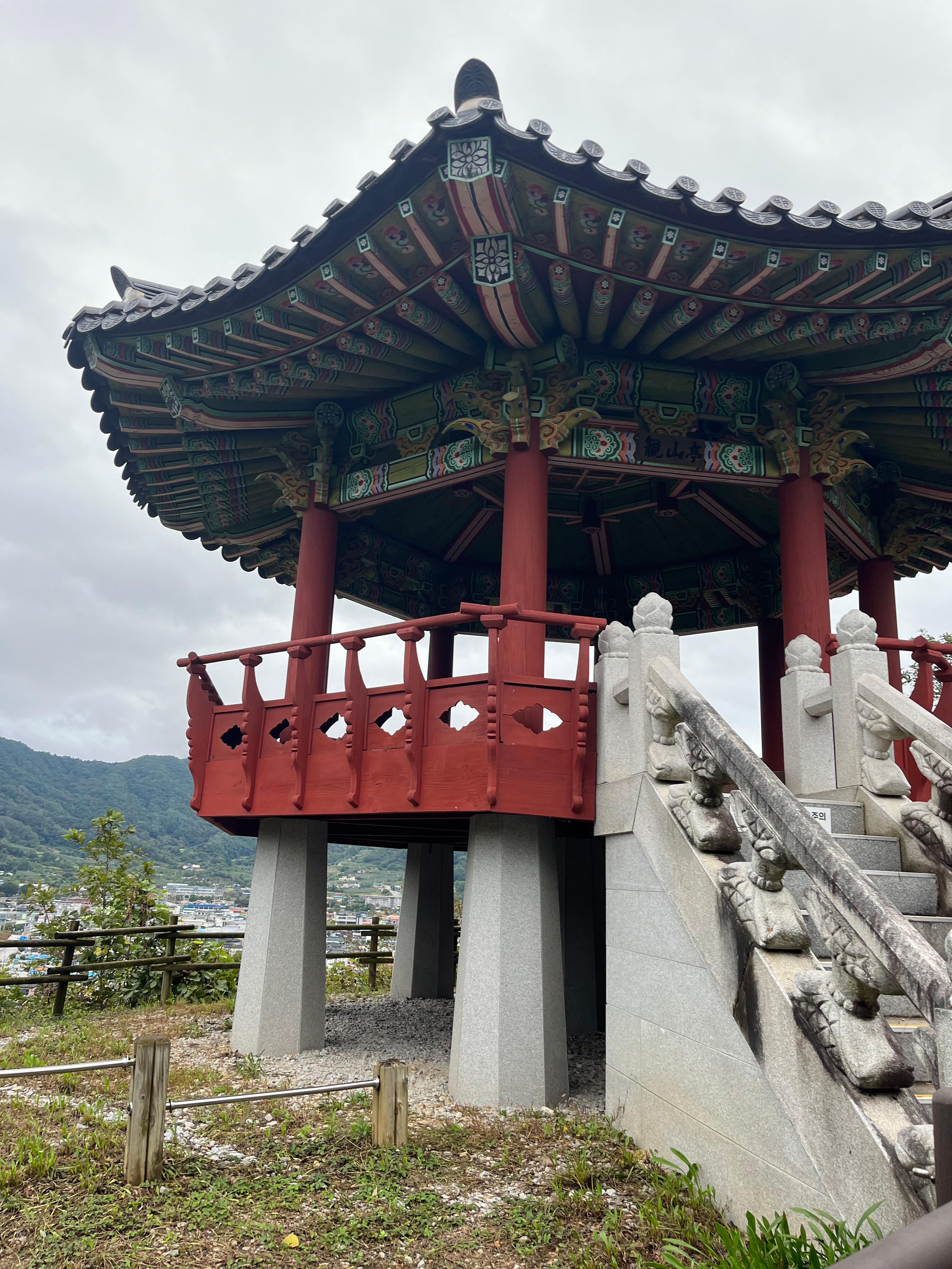 산 위에 보이는 작은 정자가 중간 지점이다.